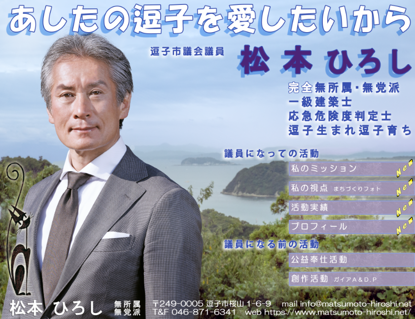 逗子市、逗子市議会議員、完全無所属・無党派。